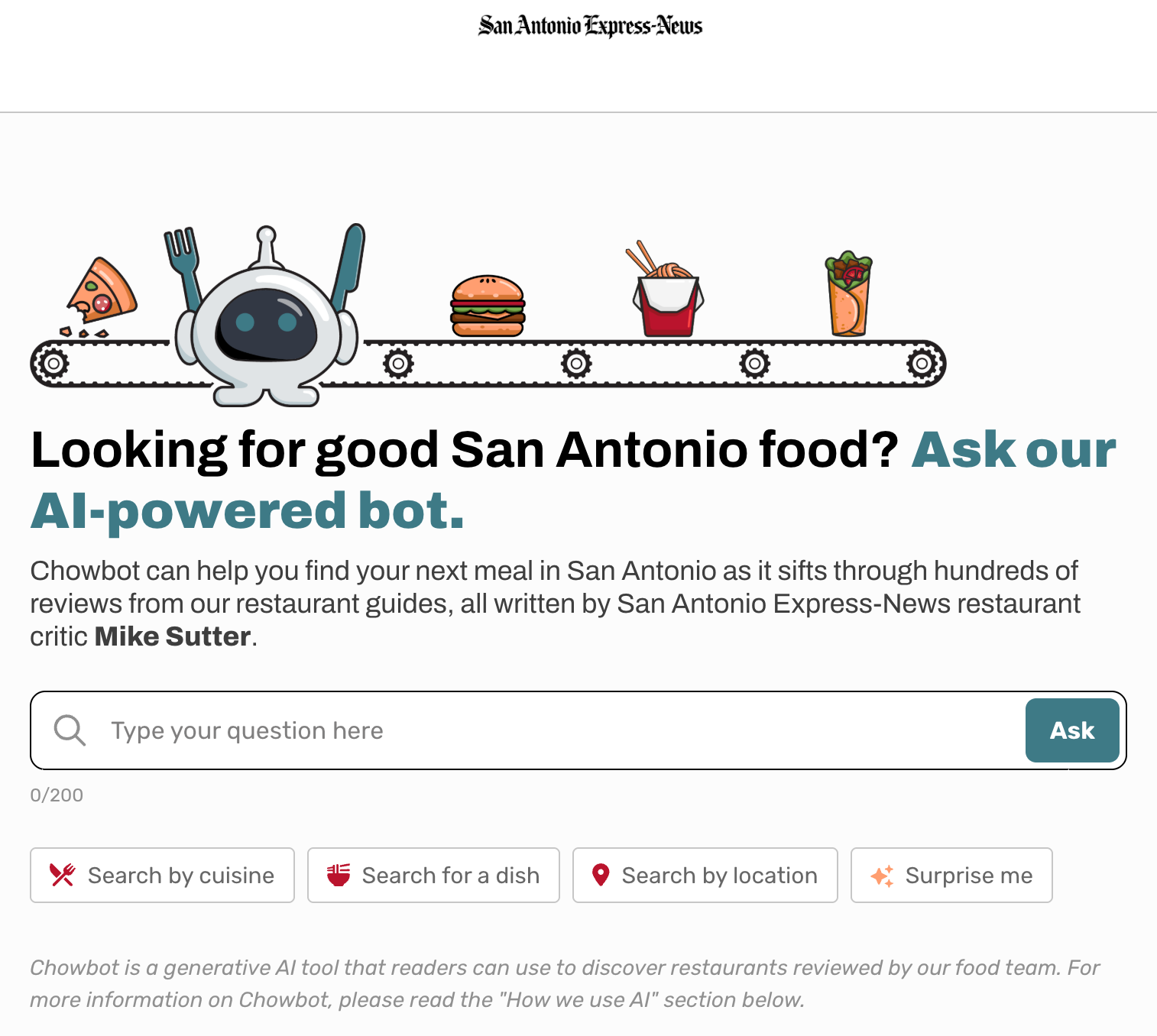 Chowbot's expansion to San Antonio illustrates this balance. Rather than simply copying the San Francisco version, they rebuilt it around San Antonio Express News' food critic and the local dining scene. "We really wanted to build on what we had done in San Francisco, but center the human, center the reporter even more," O'Rourke explains.